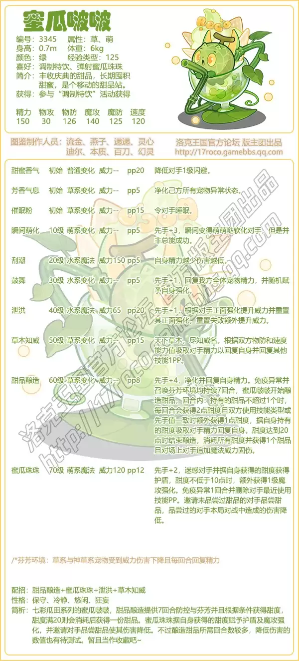 洛克王国蜜瓜啵啵技能搭配