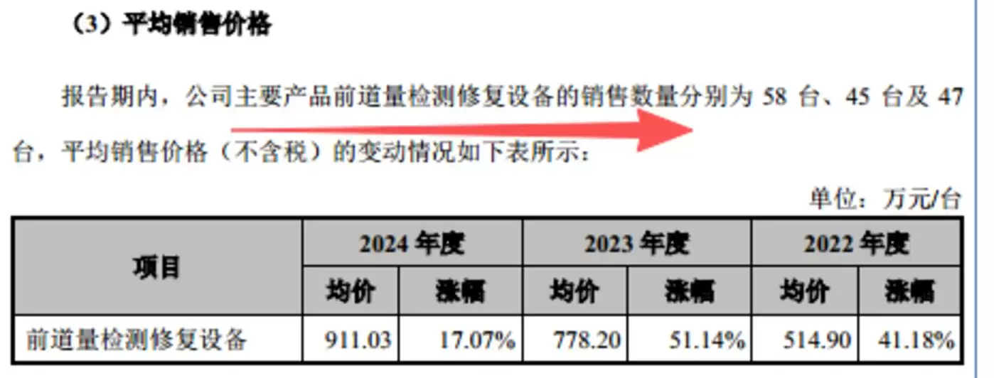 值得关注的是,卓海科技的主要产品为前道检测修复设备。报告期内,该产品的平均销售单价分别为514.9万元/台、778.2万元/台和911.03万元/台,呈现持续上升态势。其中2024年单价较2024年累计增长79.63%,三年间近乎实现单价翻倍。也就是说,卓海科技出现了"单价涨、毛利降"的异常情况。