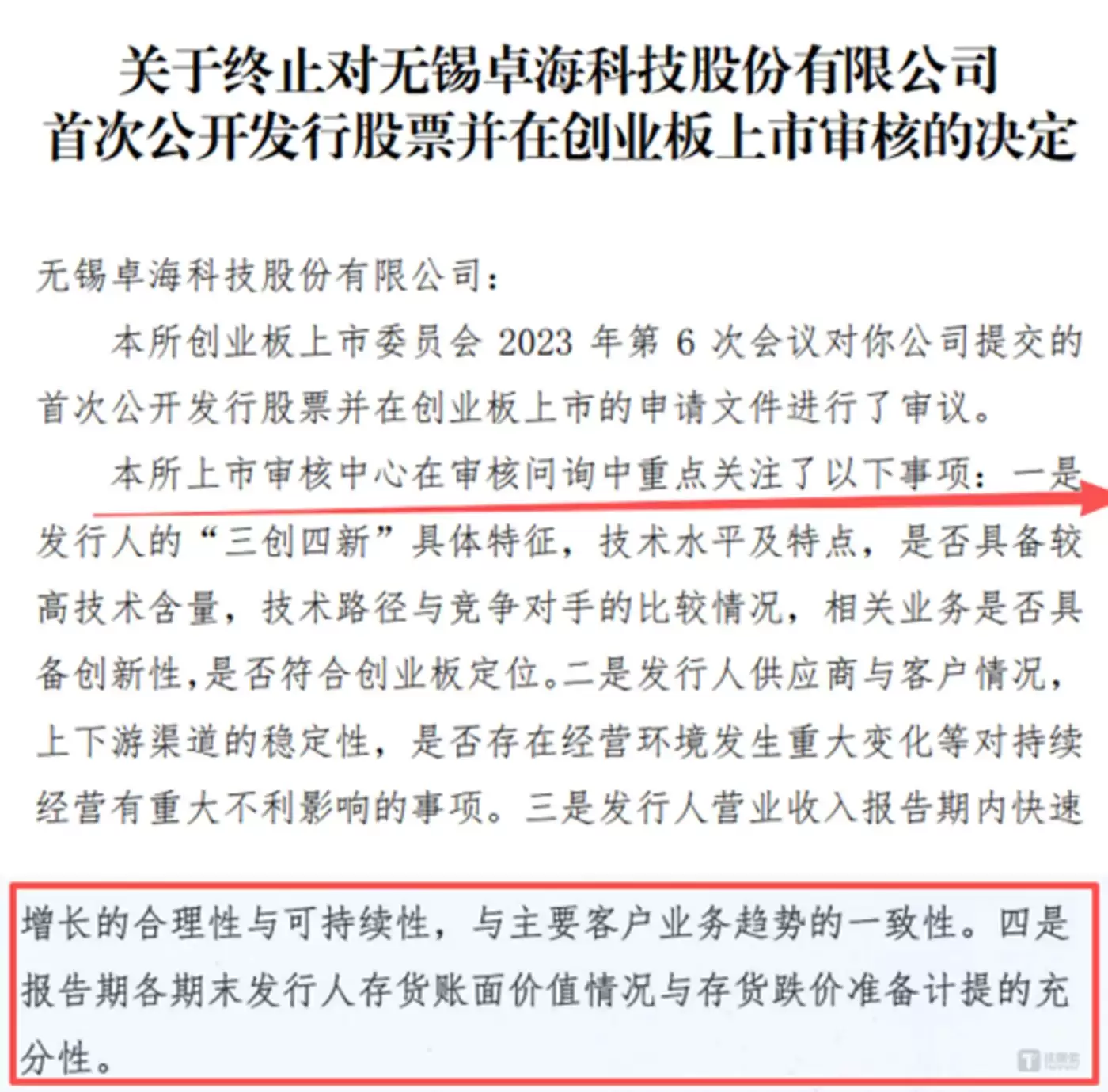 值得一提的是,在卓海科技终止创业板上市审核的相关文件中,监管层明确重点关注的4个事项中,存货周转效率与跌价准备计提问题尤为突出。