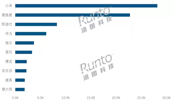2023年9月智能门锁数据:传统电商占比高,小米德施曼领跑中高端