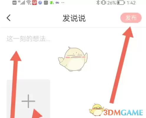 3. 跳转到说说编辑界面后,您可以上传照片或视频,输入文字内容,最后点击右下角的【发布】即可完成操作。