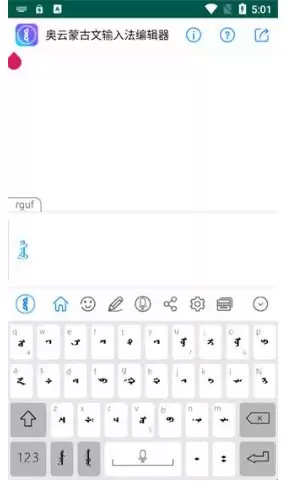 4、至此输入法切换已全部完成,现在你看到的就是蒙古文输入界面,可以立即开始使用它进行文字输入了