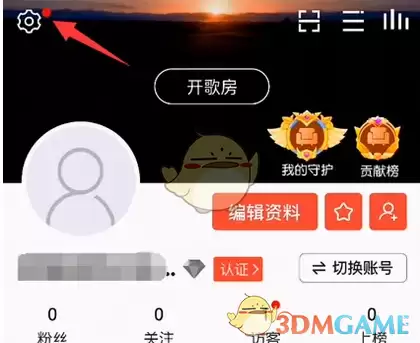 2、进入个人主页后,点击页面左上角的齿轮状设置图标。