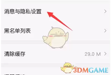3、在设置菜单中,选择“消息与隐私设置”选项。