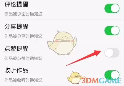 4、最后找到“点赞提醒”功能,将滑块开关向左滑动即可关闭。