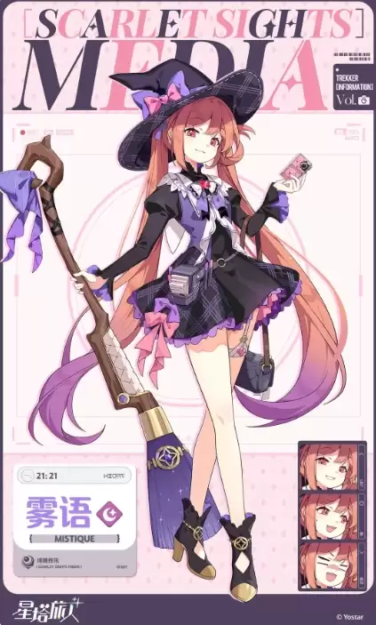 雾语目前在游戏中带来的稀有属性相当罕见,达到了五星级的品质,而且是属于暗元素类型的角色。使用雾语时,搭配同属性就能触发一些暗系的羁绊效果。目前将她放在阵容里,建议是作为一个远程魔法输出角色使用。她在魔法技能上有足够的伤害输出能力,普攻叫做"彗星连锁",使用这个技能进攻时,雾语会利用手中的扫把作为武器,对敌人进行攻击的同时,带来的是4次的连续输出方式。此时造成的攻击效果是根据她的属性,也就是暗系带来的此类属性伤害。