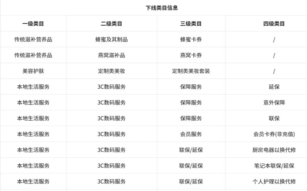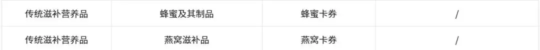 值得注意的是,本次调整中,"传统滋补营养品"板块也被波及。"蜂蜜券""燕窝券"将被下架,意味着这两类产品的虚拟化营销与券销售将被彻底禁止。