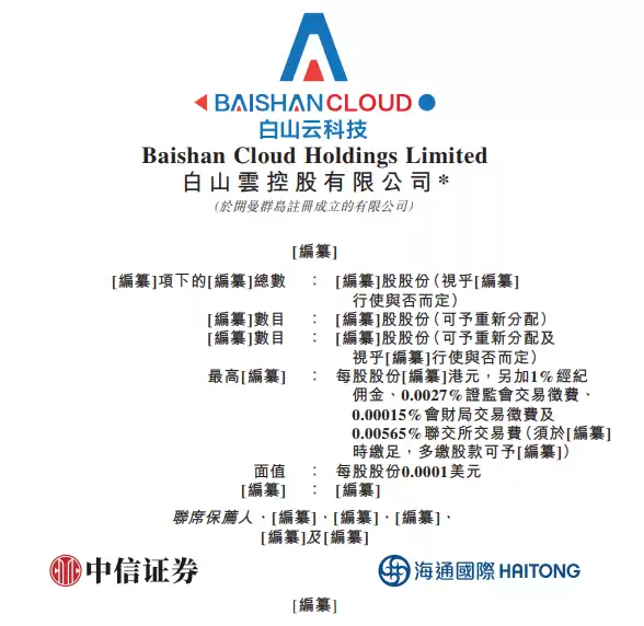 10月24日,白山云控股有限公司(以下简称“白山云”)近日向港交所递交主板上市申请,由中信证券与海通国际担任联席保荐人。
