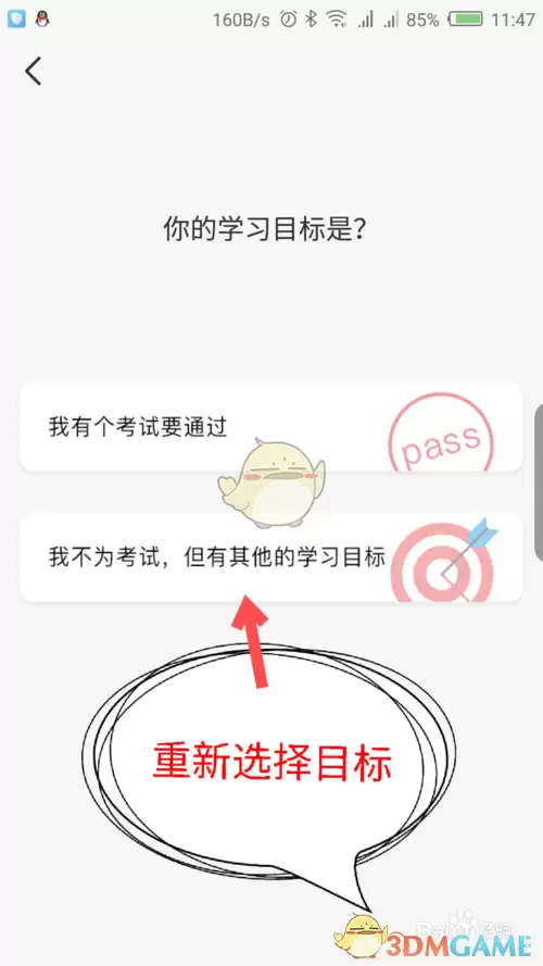 4、在打开的修改学习目标界面中,重新选择适合自己的学习目标,最后点击确认选项。具体步骤如图所示