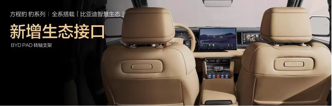 比亚迪智慧生态的融入,为两款车型增添了更多科技温度。豹5长续航版与豹8大五座版上市即搭载钛7同款生态系统,用户可通过比亚迪智慧物联APP,以语音指令控制整车生态设备,彻底告别繁琐的手动操作。车内前排座椅新增生态接口,支持BYD Pad扩展使用,未来还将接入更多生态产品,构建智慧互联的无限可能。