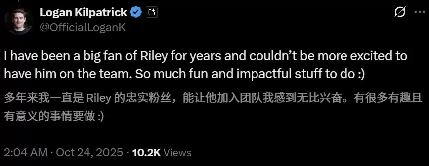 谷歌DeepMind产品负责人Logan Kilpatrick更是连发数条推文。
