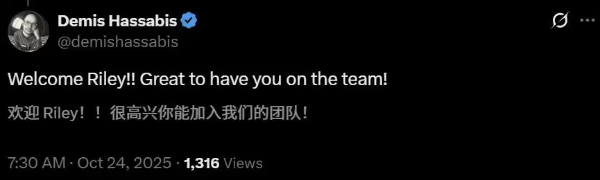 对于这次强强联合,就连DeepMind CEO Demis Hassabis都亲自下场发帖表示欢迎。