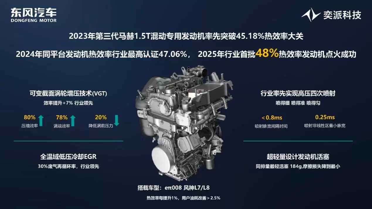 面向未来,汪俊君提出了“大电中油、纯电为主”的技术路线,并呼吁行业共建“一个APP通充全场景”的充电生态,以解决当前充电设施互操作性差的痛点。奕派科技已规划2026年的技术升级路径:16000吨一体化压铸、固态电池、超千伏电驱平台等核心技术将陆续落地,同时与华为深度合作,加速乾崑智驾与鸿蒙座舱的搭载。今年9月28日,新一代东风马赫动力发动机点火成功,热效率目标直指48%——从2024年的45.18%,到2024年的47%,再到如今的48%,马赫动力以“一年一台阶”的速度持续领跑行业。