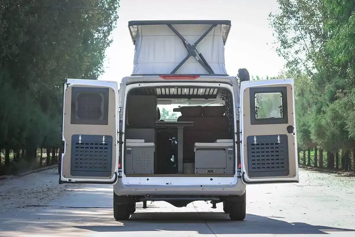 车内布局采用双版本设计策略。标准旅居版配备可变形沙发床,通过模块化设计实现用餐、办公、休憩的多种场景切换;而装载版则取消传统座椅,打造出纵深达2.3米的纯平储物空间,可同时容纳两辆山地自行车或一台越野摩托车。这种“生活空间+装备仓库”的灵活切换,使其成为运动爱好者与长途旅行的理想搭档。