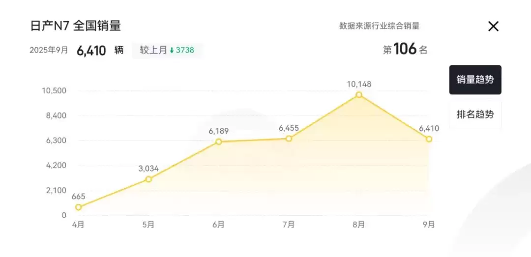 从4月正式上市,到8月月销破万,再到9月的销量回落……这款开局堪称王炸的日产N7能否接过轩逸的大旗,扛起日产品牌的未来,尚不可知。