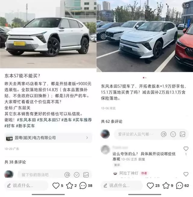 上市七个多月后,东风本田S7最近在社交媒体上的热度忽然回升。究其原因,是这款原本售价19.99万元起的东本纯电新车,如今传闻可以优惠到12万-13万元的水平。