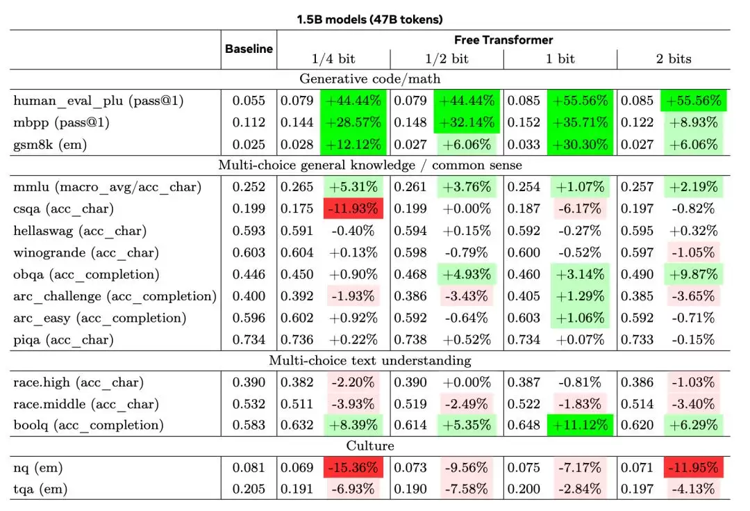 这一创新设计仅增加约3%的计算开销,却显著提升了模型在逻辑推理与结构化生成方面的表现,在GSM8K、MMLU、HumanEval等权威测试中超越了规模更大的模型。