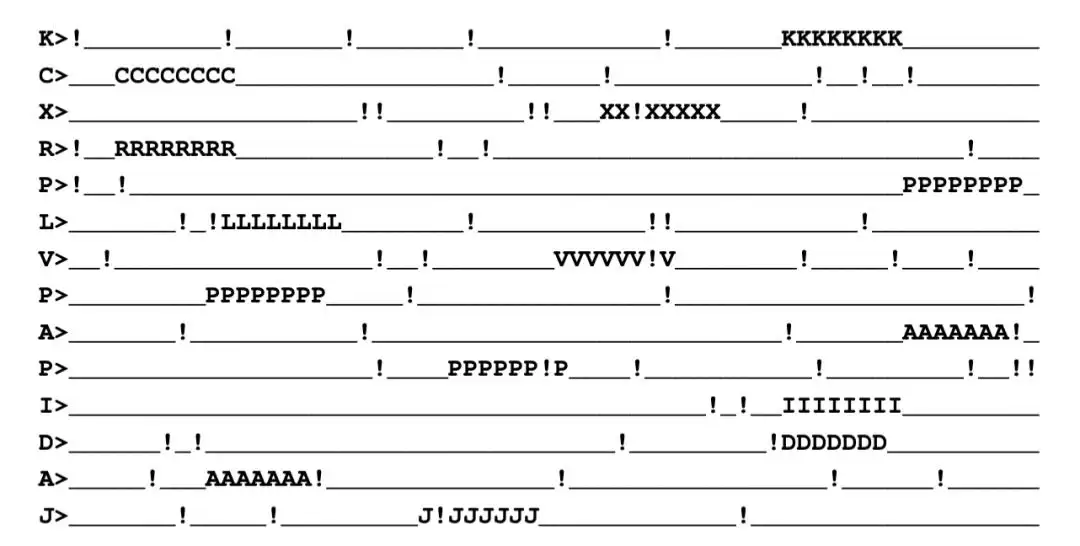 主体是一行固定长度的下划线_,在随机位置嵌入8个相同的大写字母组成的"target"(如KKKKKKKK)。