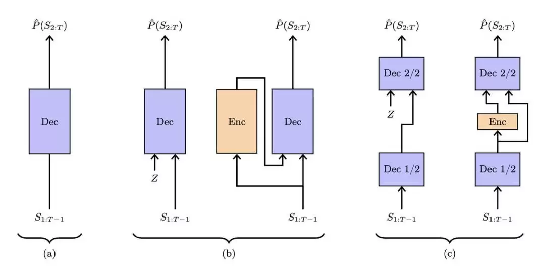 第二个架构增加了随机状态Z,并在训练时使用额外的编码网络来推断每个样本对应的隐藏状态。