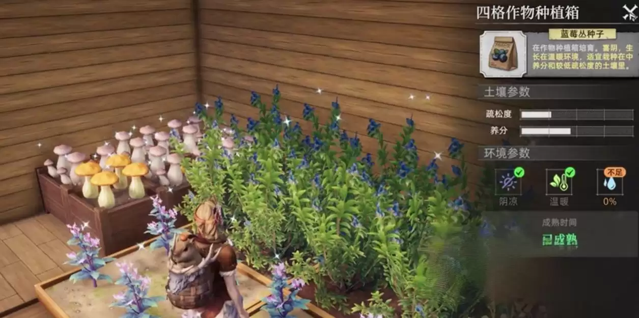 玩家在种植作物时,除了关注水分供给,还要注意不同植物对土壤的特殊要求。并非所有作物都能在同一类土壤中健康成长,有些植株需要泥炭土与草木灰的混合基质,有些则要求泥炭土与粘土的搭配。例如覆盆子这类植物,就需要泥炭土和粘土的特定配比。大家一定要根据作物的实际需求来配置合适的土壤哦。