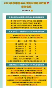 2025赛季乒超联赛在延续传统赛制优势的基础上,对竞赛体系进行了全面升级。无论是精彩纷呈的强强对话,还是运动员们追求卓越的拼搏精神,都将为球迷带来难忘的观赛体验。让我们共同期待新赛季的精彩对决,见证乒乓球运动的巅峰较量!