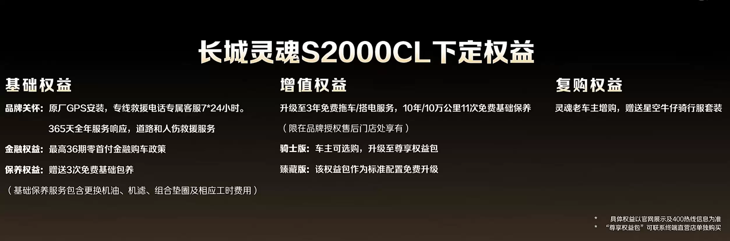 长城灵魂摩托车品牌旗下第二款车型S2000+CL正式开启预售,同时公布了骑士版与臻藏版两款配置售价,分别为18.98万元和21.88万元。最新同步推出多项预订权益,具体细则可通过最新渠道查询。