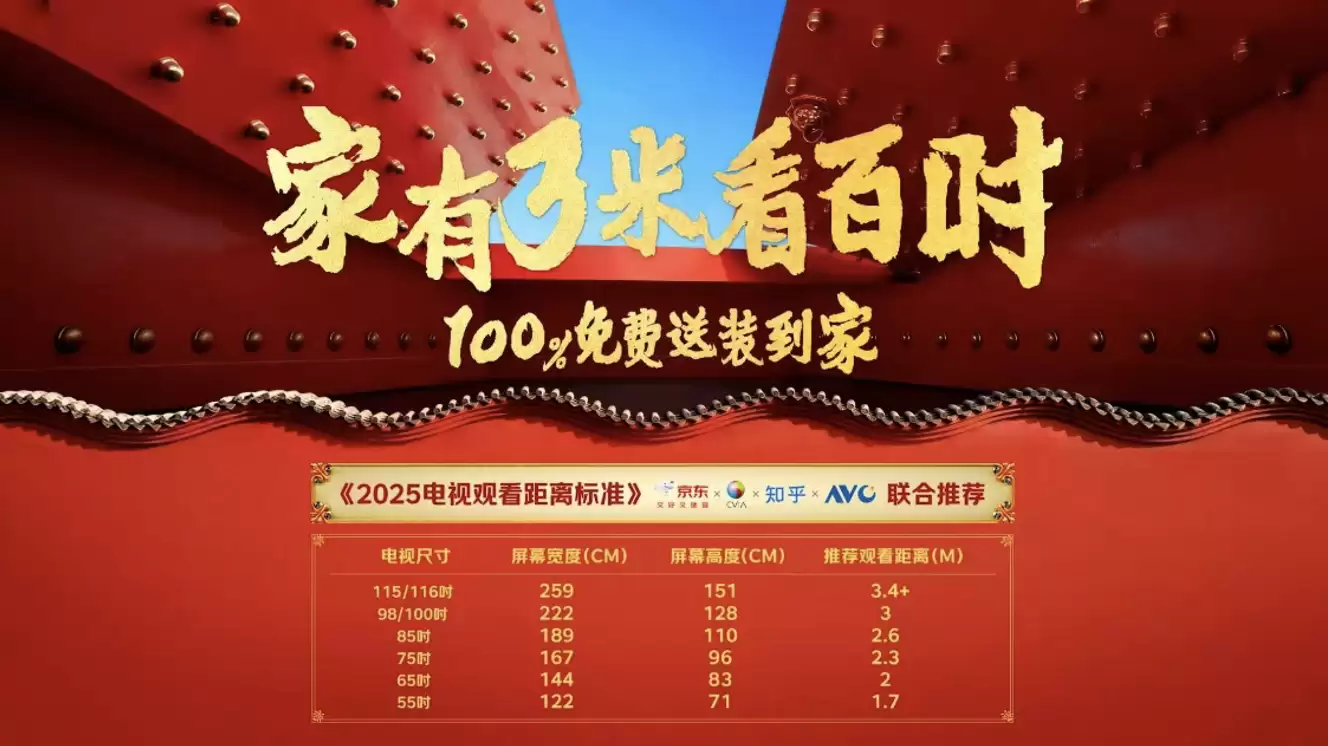 京东联合多方发布电视观影距离标准,3米看百吋成主流