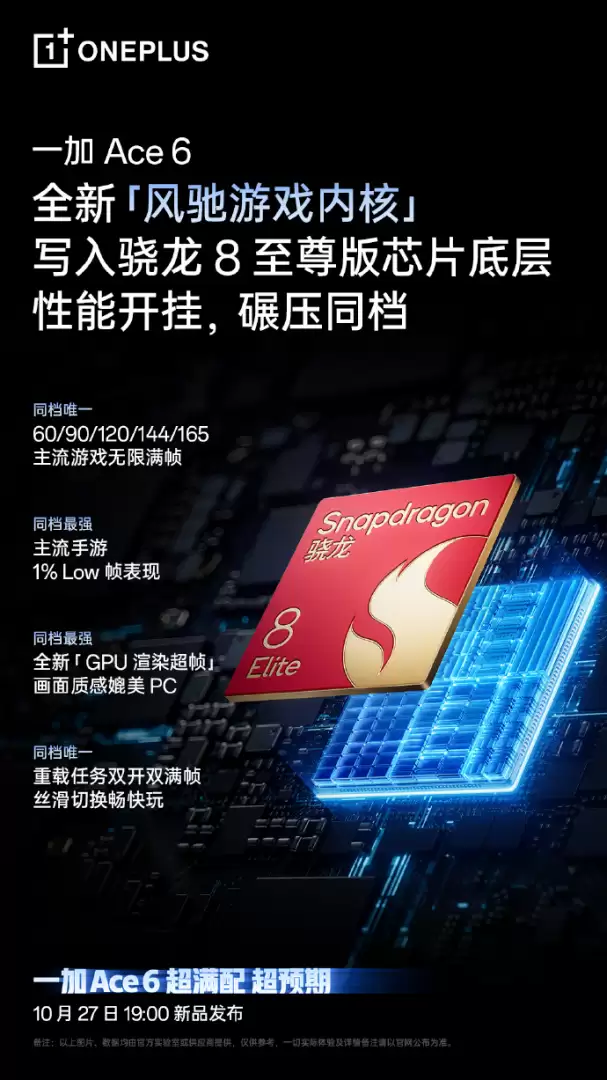 一加Ace+6核心配置:165Hz护眼直屏与7800mAh大电池,今晚19点发布