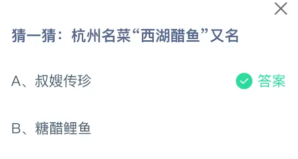 西湖醋鱼又名什么?支付宝蚂蚁庄园2025年10月27日最新答案