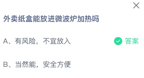 外卖纸盒能放微波炉加热吗?支付宝蚂蚁庄园10月27日答案揭晓