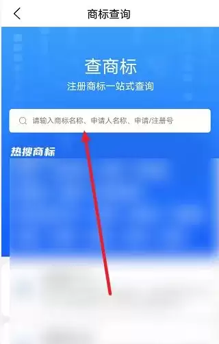 进入商标查询界面后,轻点顶部的【搜索框】,输入您要查询的商标全称。
