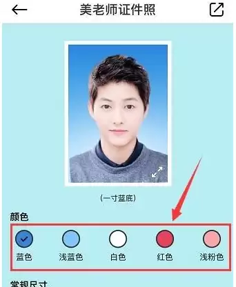 随后会进入证件照编辑界面,这里提供了多种背景颜色供您选择,如下图所示