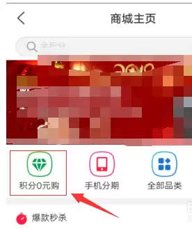 5、点击"积分当钱花"选项,进入商城首页,选择"积分0元购"功能,点击进入后界面如下图所示: