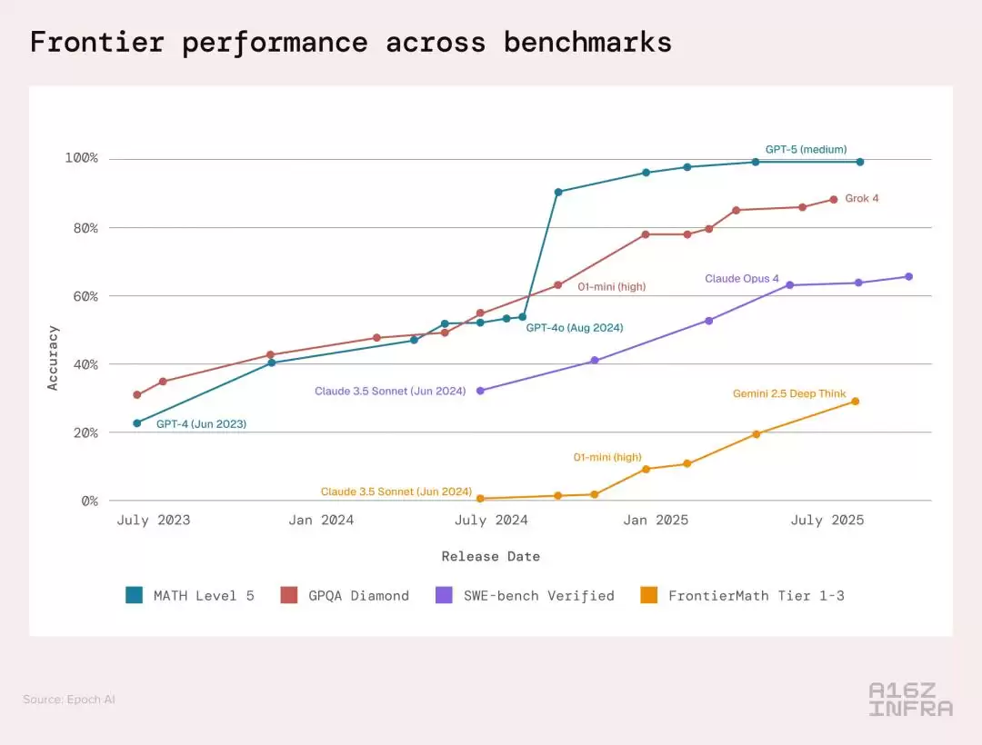 其实,大语言模型也走过类似路径。2024到2025年,主流模型性能持续上升,之后在各种评测中逐渐趋于稳定。到了这个阶段,各家研究机构开始把重心放在具体场景和垂直领域上,而不是单纯追求更高分。同时,基于这些模型的AI产品也开始快速落地。