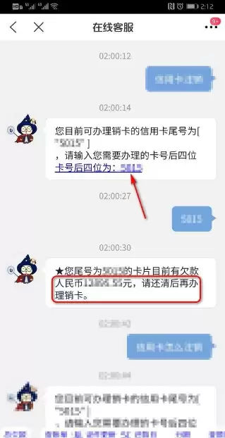 页面会显示可办理销卡的信用卡尾号,按提示输入对应的卡号信息。
