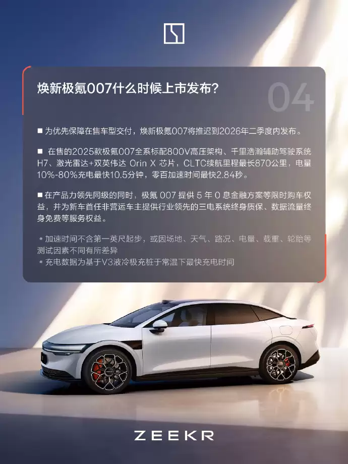 极氪007推迟至2026年二季度交付,现款配置成亮点
