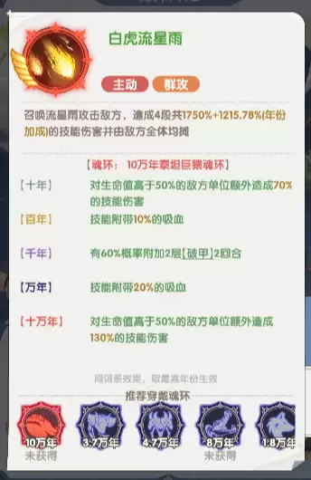 召唤流星雨攻击敌方阵营,造成总计1750%+(年份加成)的技能伤害,并由敌方全体均摊。