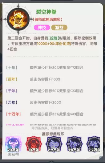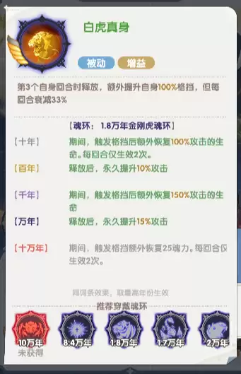 【十万年】期间触发格挡后,额外恢复25点魂力,每回合最多生效2次
