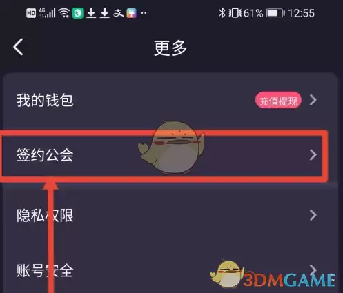 4. 在弹出的菜单中,选择【签约公会】选项。
