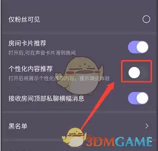 4、进入隐私权限设置页后,找到「个性化内容推荐」选项,点击右侧的开关按钮将其关闭即可。