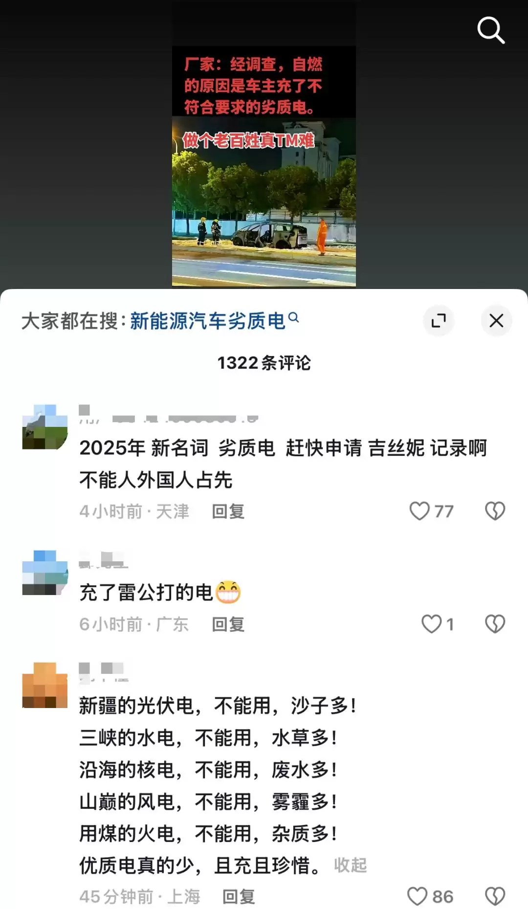 "劣质电"说法之所以会被广泛传播,本质上反映了消费者对新能源汽车安全问题的关切。