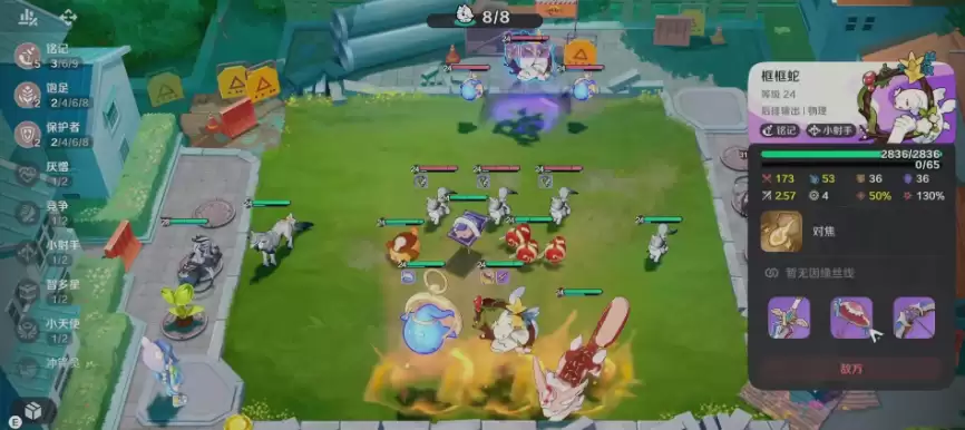 当框框蛇与攻击目标之间的距离超过两格时,后期会获得一定的加成提升。因此,如果继续让框框蛇担任输出角色,其远程能力会更为出色。若想充分发挥它的潜力,“羁绊”效果是必须触发的——当达到8层羁绊效果时,能力将有大幅百分比的提升。比如攻击力方面会有40%的增幅,除了攻击加成外,在属性上也有一定的提升。技能方面,建议使用“对焦效果”,因为使用该技能后,它会自动锁定距离最近的敌方单位,造成物理类型的伤害。此时造成的伤害除了利用能量弹进行输出外,在释放了“能量大输出”之后,还会给自身带来一定的强化效果。