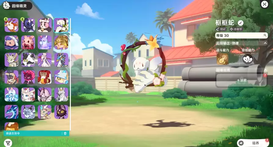 框框蛇在当前游戏中是非常适合放置在输出位置上的精灵。建议大家将它放在后排使用,因为它的输出能力相当可观。这类精灵通常存在一个共同弱点:自身防御力往往不高,但带来的伤害输出却十分充足。作为物理输出能力出色的精灵,它的核心机制是“锚定标记”。而它的耳特性属于“小射手”类型,这类特性决定了它只能被安排在后排位置,因此存在一定的站位限制。目前,这类精灵在攻击方面除了拥有额外加成外,其实都比较适合用于输出。