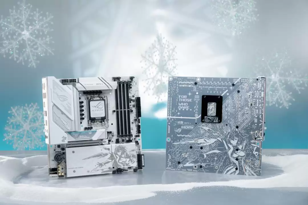 华硕ROG B860小吹雪主板同样拥有超大面积的银白色散热装甲和浅色PCB,加入雪武战姬主题元素,再配合上支持神光同步的ROG LOGO,构建次元美学新标杆!目前该主板限时直降150元,到手价仅需1349元。京东商城购买链接:https://item.jd.com/100168281560.html;华硕商城购买链接:https://store.asus.com.cn/store/goods/detail?productId=42243237026844