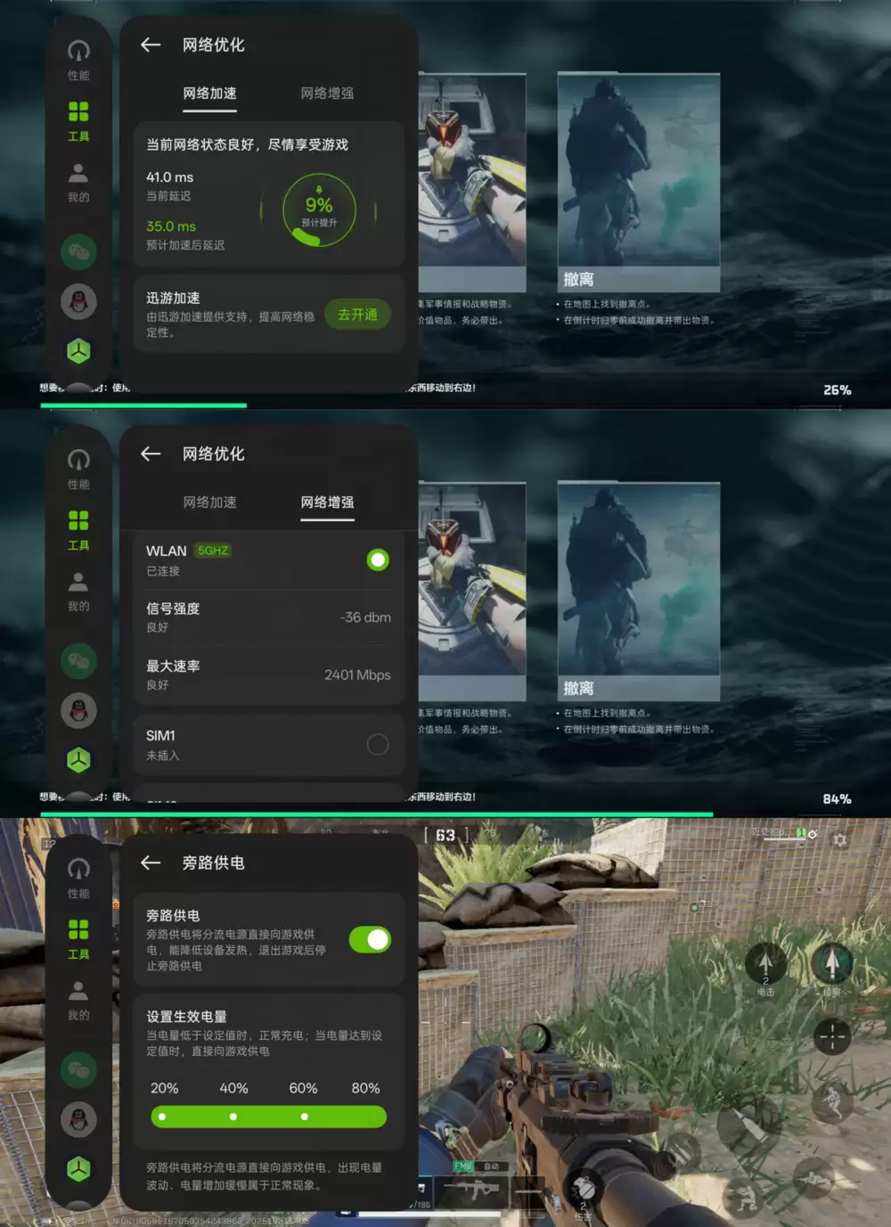 一加15还搭载了电竞网络芯片G2,它内置了自研的蜂窝网络模块,在游戏中可以使手机横握的同时,都能达到稳定网络的连接,同时内置的独立计算单元,也能起到增强信号的作用,大幅度减少高延迟带来的卡顿感。与此同时特别实用的旁路充电功能还能支持边玩边充,在长时间玩游戏的时候可以大幅降低对电池的损耗。