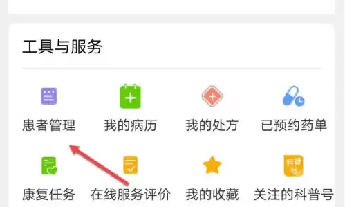 进入个人中心后,请选择「患者管理」功能。