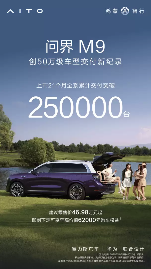 问界M9交付破25万辆:科技豪华双驱领跑高端新能源市场