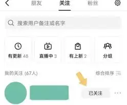 找到需要取消关注的对象时,您可以通过上下滚动页面浏览,或直接使用搜索框精准定位目标账号。