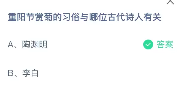 重阳节赏菊的习俗与哪位古代诗人有关?支付宝小鸡课堂开课啦!每天花一分钟答题赚饲料,喂喂小鸡就能贡献爱心啦!轻松又意义十足!2025年10月29日蚂蚁庄园的小鸡课堂题目正确答案是【陶