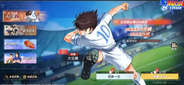 累计完成60次招募,还能触发“保底机制”,必定获得1名SSR球员,且有较高概率抽到UP角色大空翼;